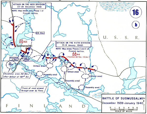Entre el 4 y el 8 de enero de 1940, la 44ª División de Fusileros fue dividida en grupos aislados y destruida por las tropas finlandesas (en una táctica conocida como motti), dejando mucho equipo pesado soviético para las tropas finlandesas.