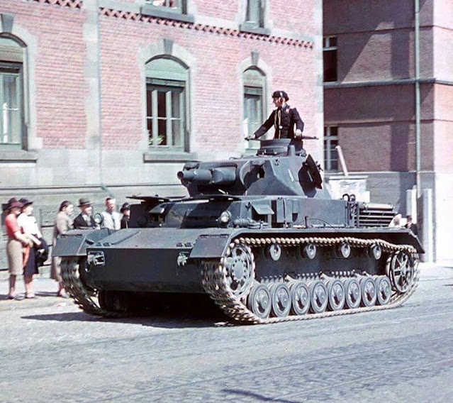 Esta icónica imagen (coloreada), es ampliamente conocida y utilizada como portada de varios libros. La foto está tomada el sábado, 1 de junio de 1940 en Francia y se ve a un Panzerkampfwagen IV Ausf. D (Nº 432) comandado por el Oberleutnant (1er Teniente) Karl Hanke (El último Reichsführer der SS) y en esa época asignado al Regimiento Panzer 25/7.División Panzer bajo el mando del Generalmajor Erwin Rommel durante la Batalla de Francia